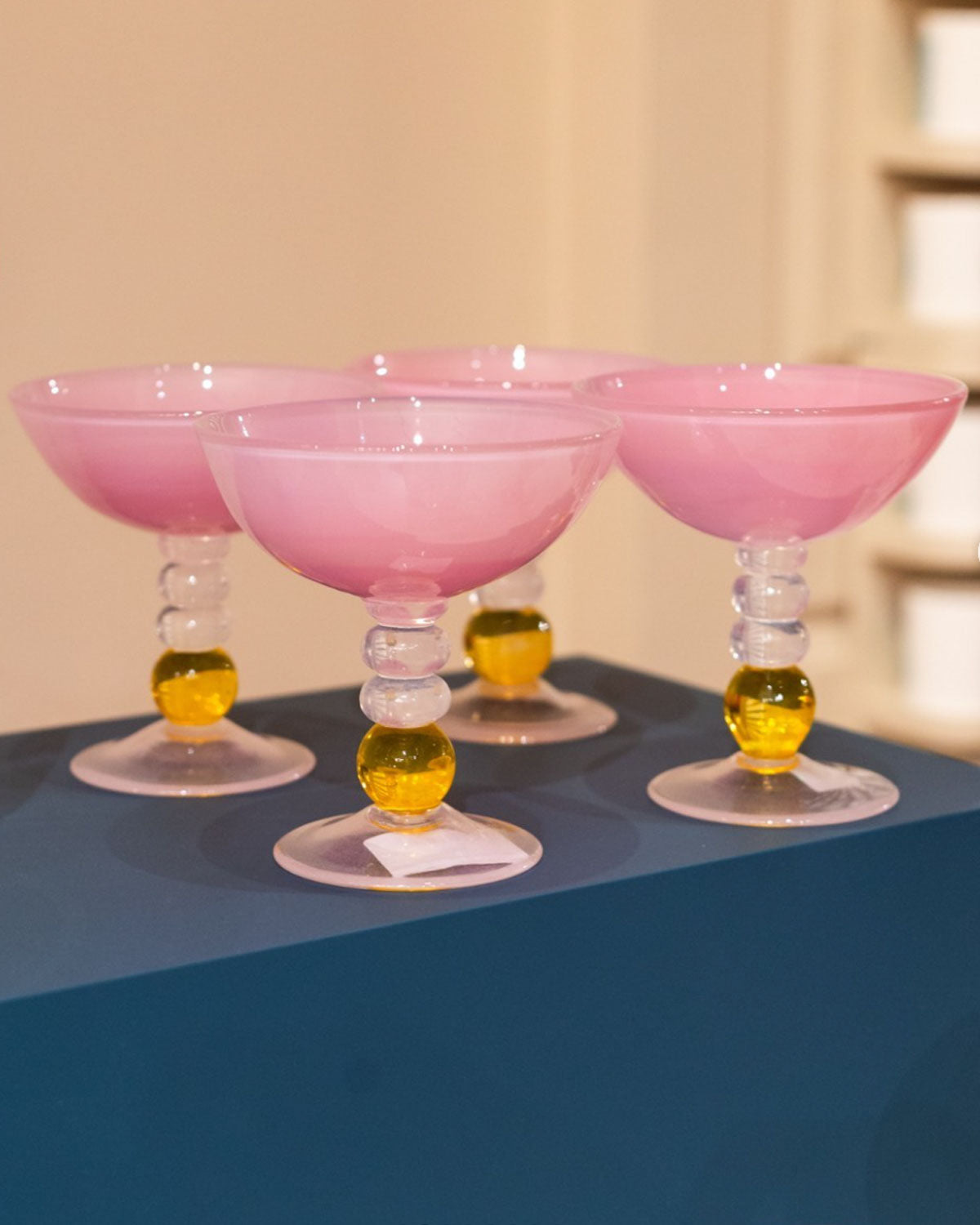Gather were commissioned by F&M to create a glassware range which mimics the iconic blue of the Fortnum branding alongside a pallet of pinks and greens as seen in the Miami collection.
