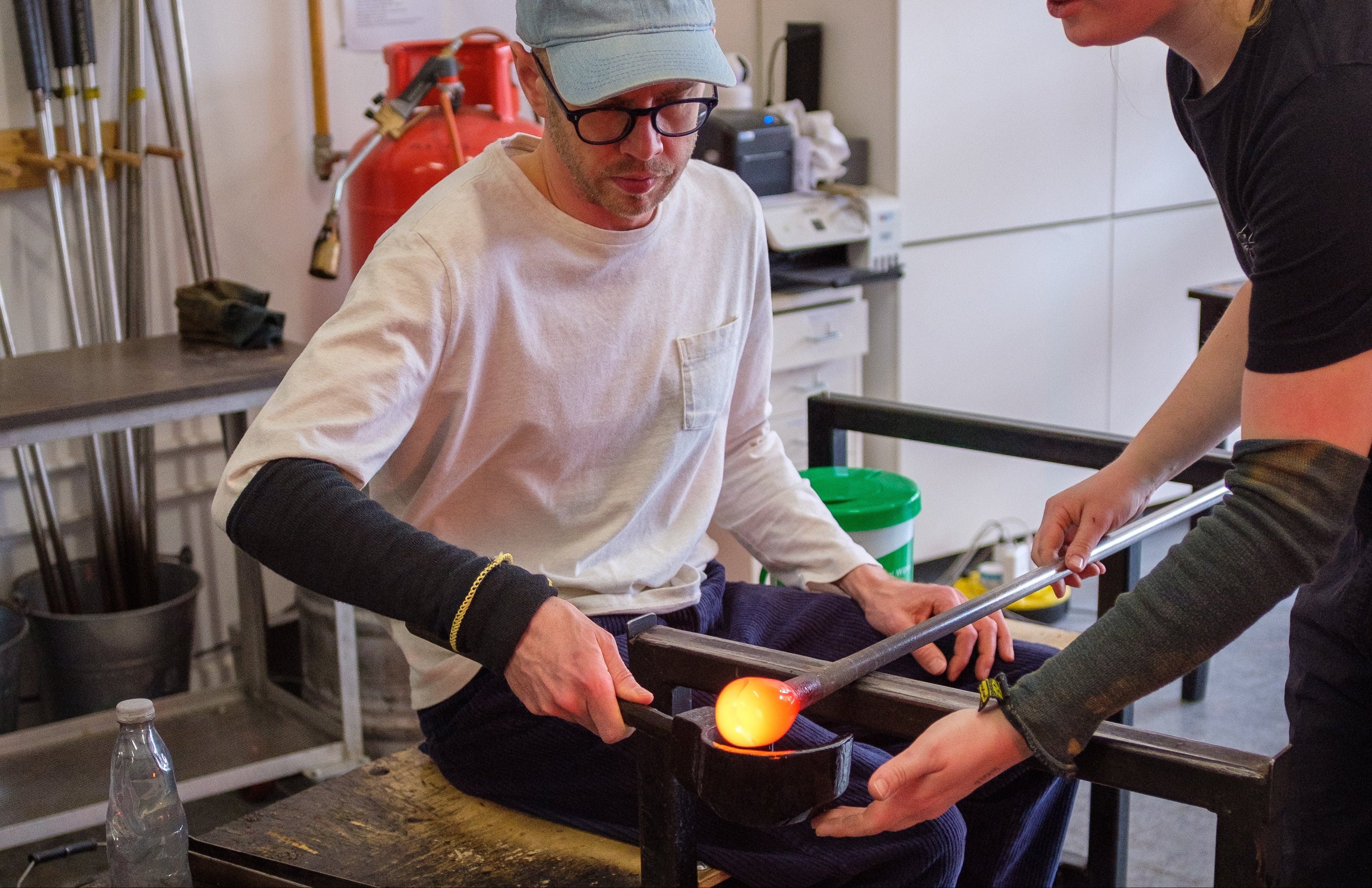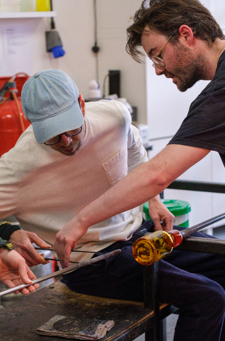 All sessions take place in a fully operational glassblowing studio, not a demonstration space. Participants work directly with molten glass at the bench, using traditional tools, heat, and hands-on instruction throughout. Class sizes are kept small to allow for close guidance and a direct experience of the making process.
