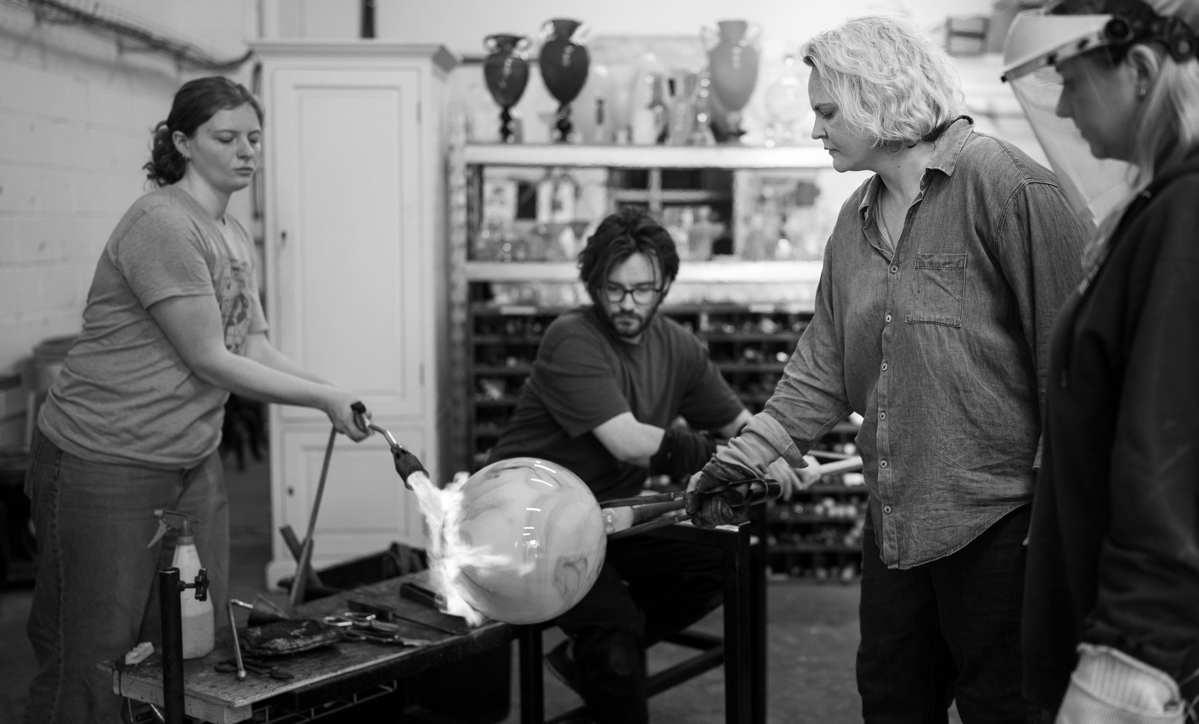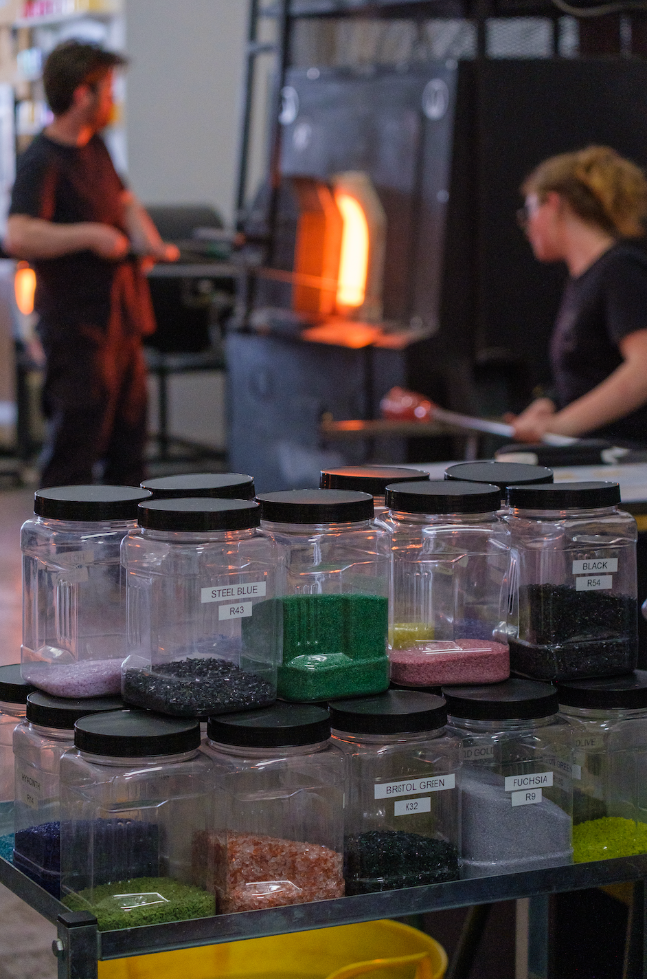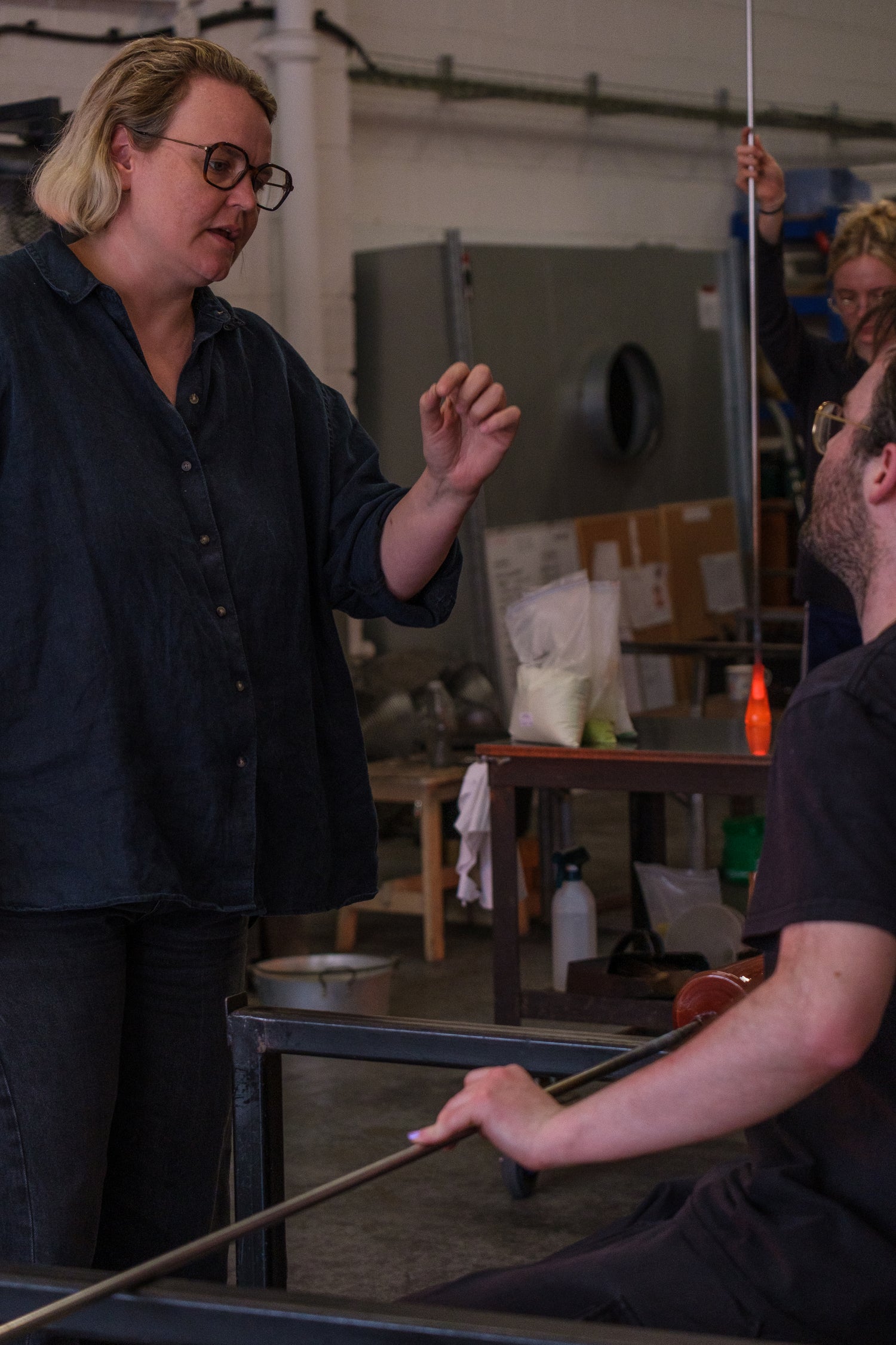 Form, scale, and colour are shaped through the process of working with molten glass at the furnace, allowing each piece to be tailored to its setting.
