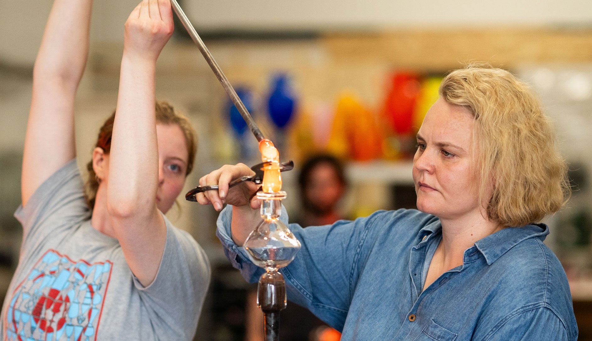 Gather loves to share the craft of glassblowing by inviting individuals through the doors of the hot glass studio to try it for themselves. Whether you are looking for a short, exciting glassblowing experience or wanting to learn more in depth skills, browse all classes Gather have to offer.