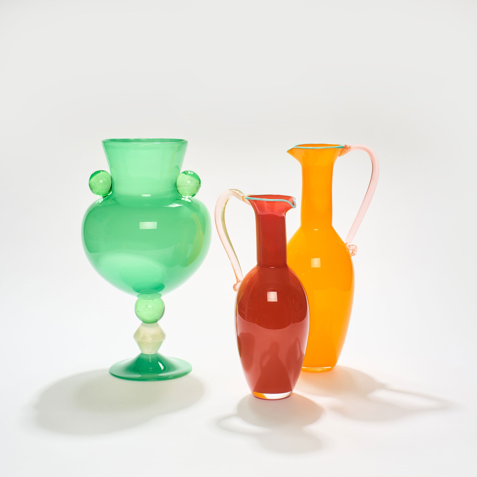 In our Woolwich, London studio, we combine traditional glassblowing techniques with bold colours and thoughtful design. Some parts are shaped using moulds for precision, while many details are crafted by hand, layer by layer, breath by breath.