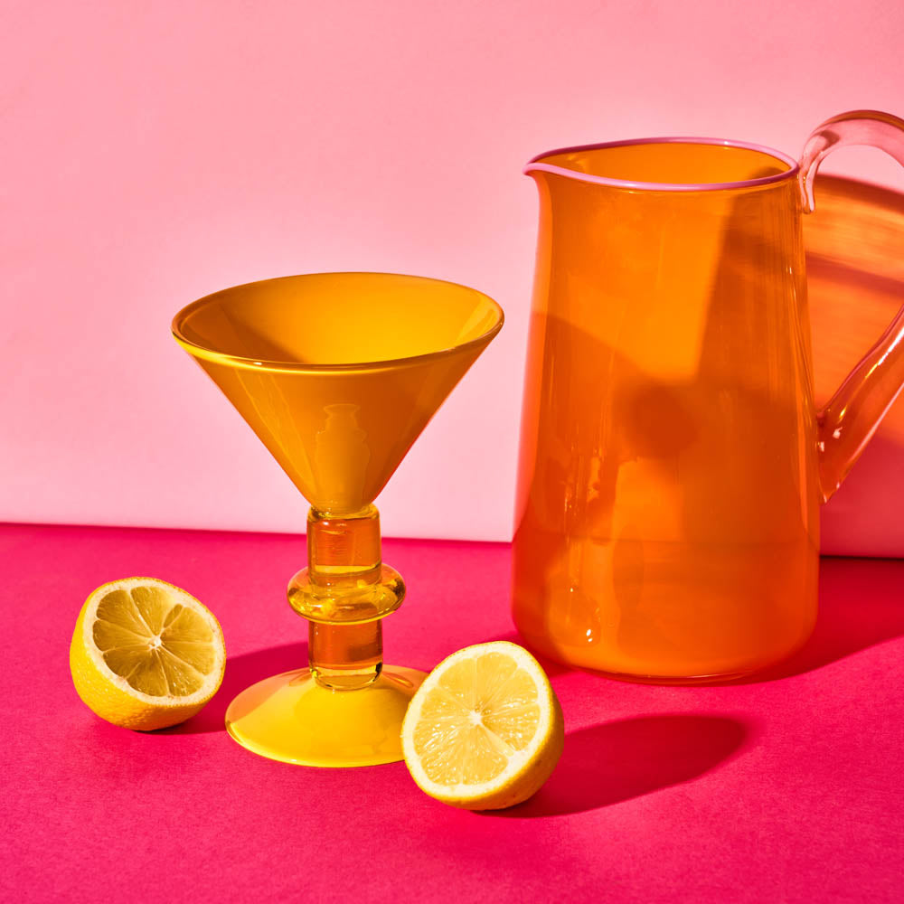 Have bold drinks fun with this spirited martini glass. Each glass is handmade in our London glassblowing studio by Phoebe and her talented team of glass artisans.