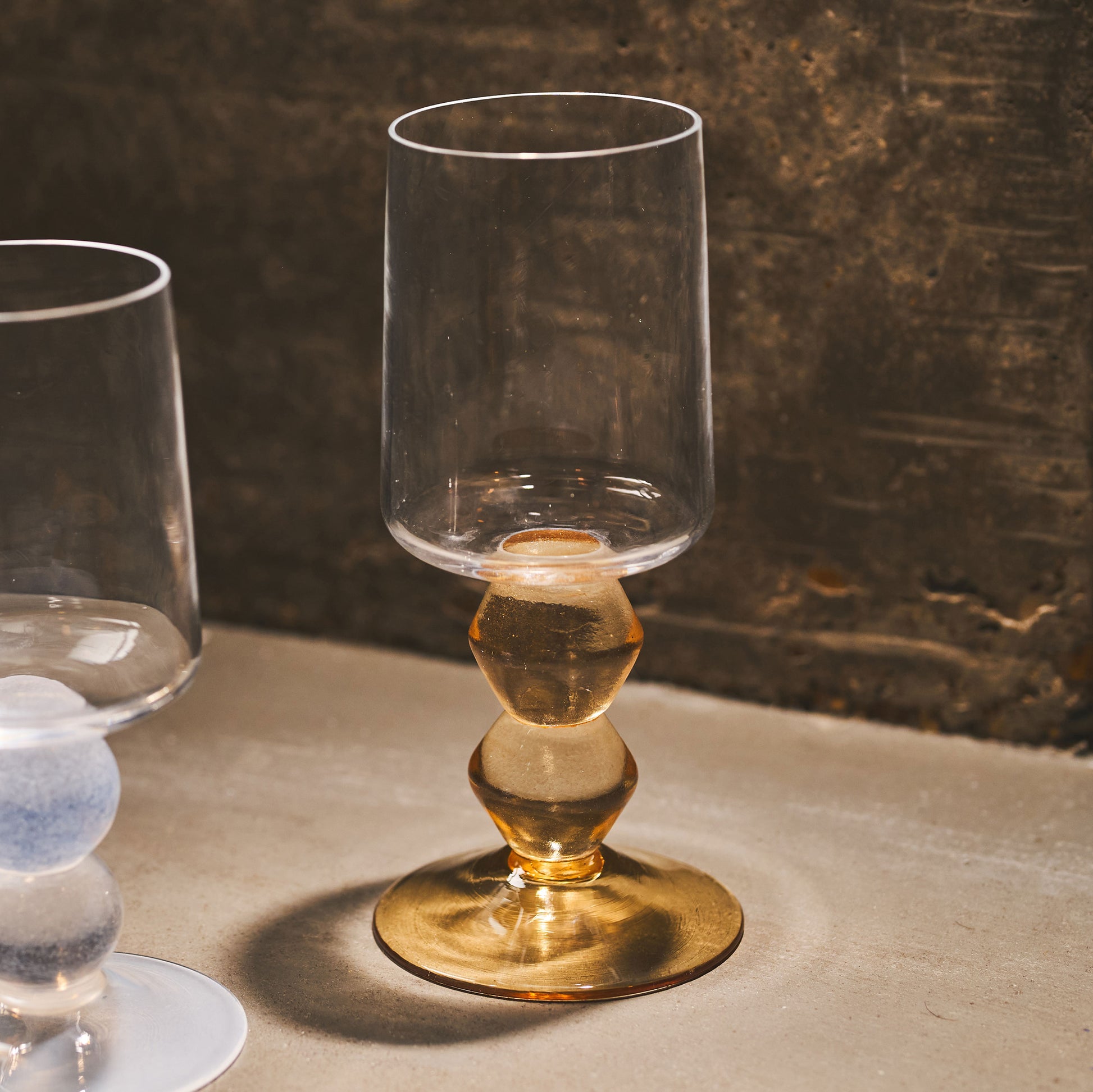Each glass features a handblown spherical-and-diamond stacked stem, a matching blown foot, and a clear glass bowl - opulent, timeless, and comfortable to hold.