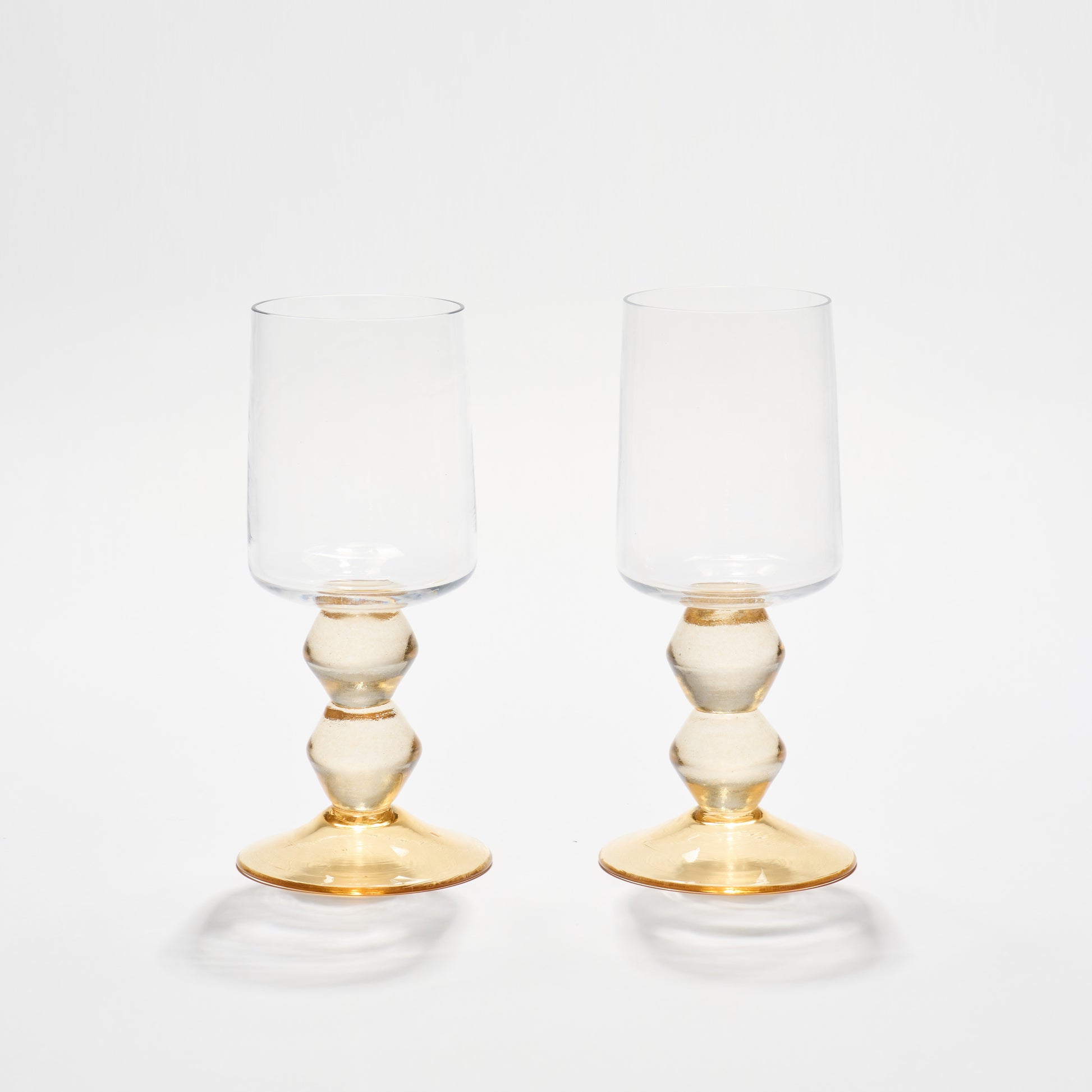 Elevate your sipping experience with a set of 2 New York Whisky Glasses. Each glass combines a handblown spherical-and-diamond stacked stem with a clear, rounded bowl and matching foot, balancing elegance and weight perfectly in the hand.